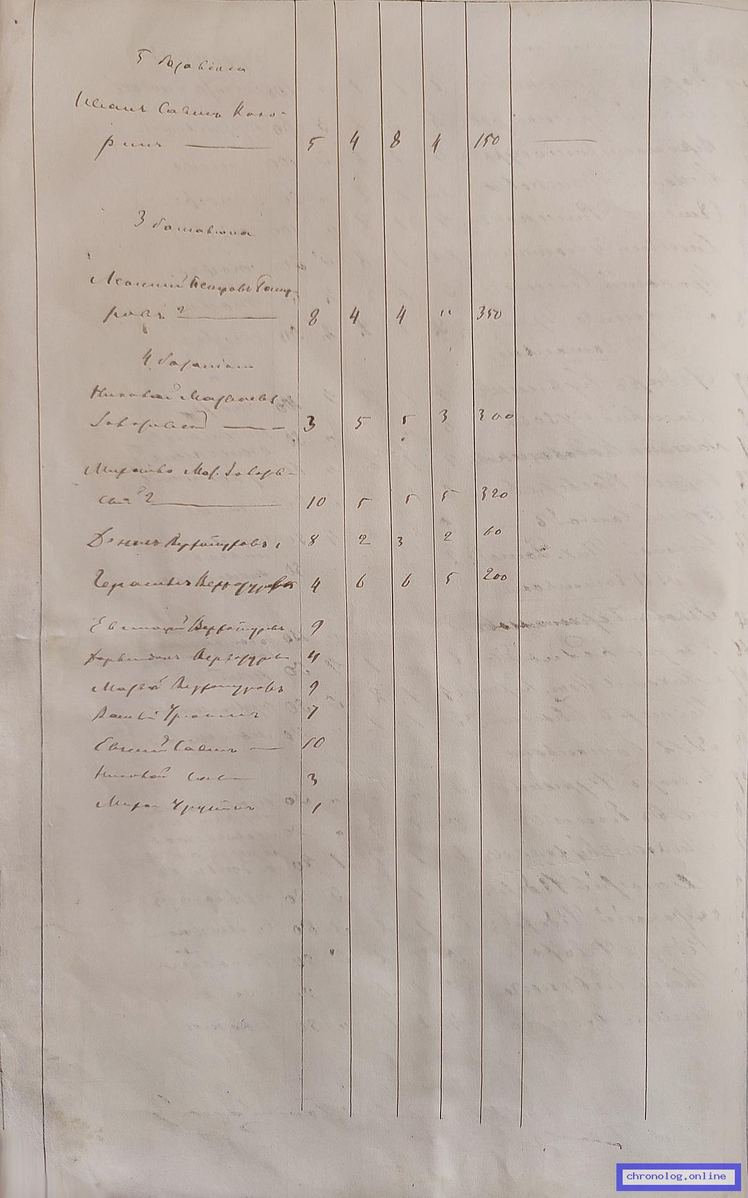 ГАЗК 30-2-190, Л.7об (О выдаче пособий лицам, отправляемым на Амур): Зауряд есаул Софронов показан в списке на выдачу пособий разным лицам, отправляющимся на Амур с переселенцами в 1858 году. Исход: Нерчинский уезд. Снимки: 7об. | |||