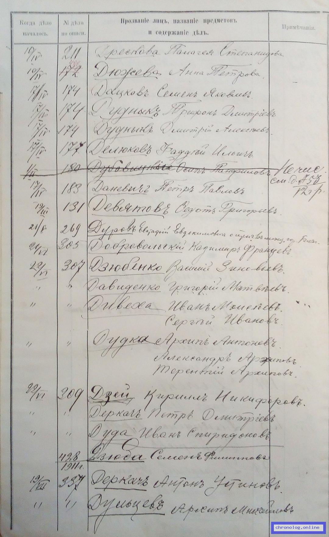 РГИАДВ 704-4-3230, Л.25об (Указатель дел переселенческой части за 1912 год): Дивеха Иван Моисеевич показан со ссылкой на дело (старая опись, нумерация не действительная) №307 от 22.6.1912. Время и место исхода не показано. Снимки: 25об. | |||