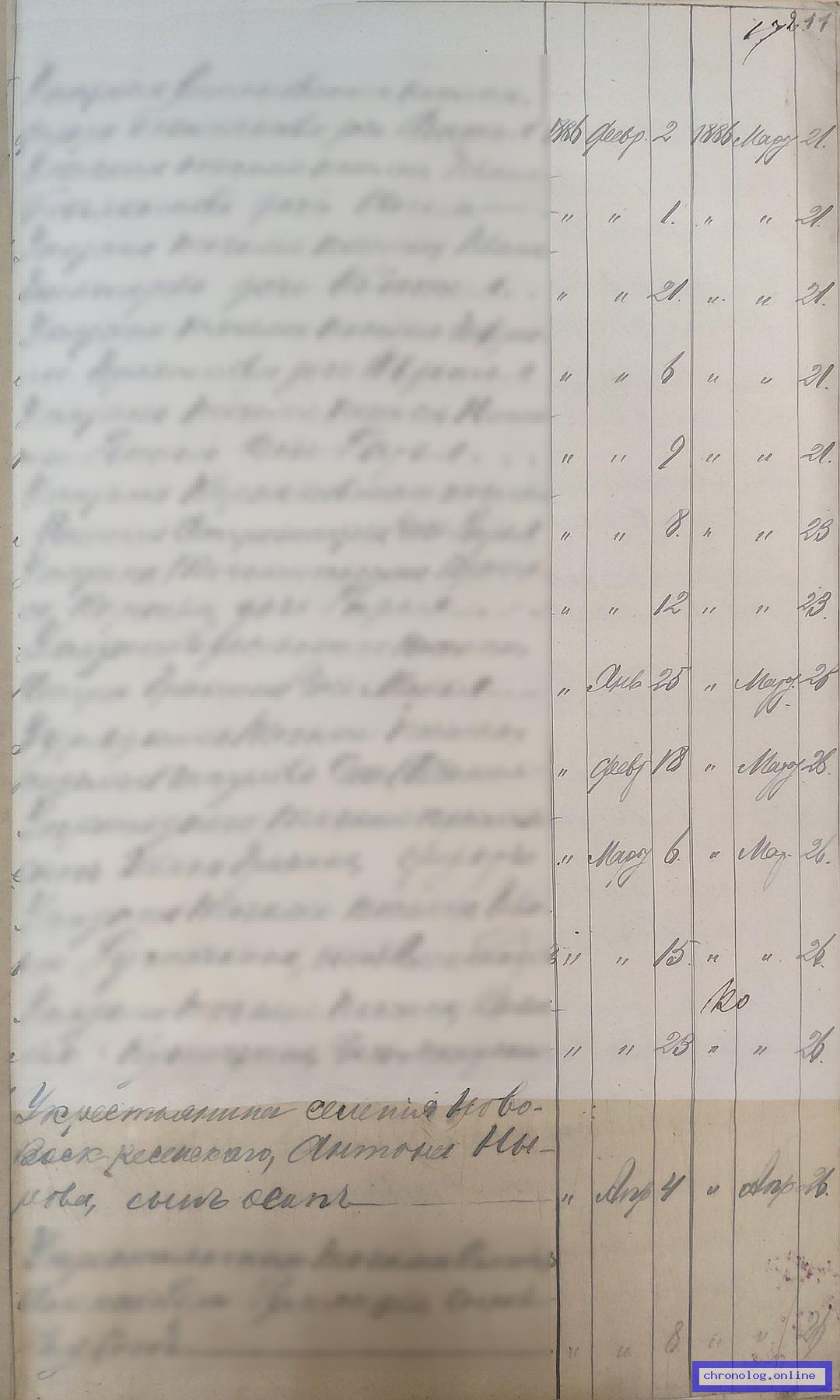 РГИАДВ 793-1-558, Л.11 (Метрические книги станичных округов Амурского казачьего войска на 1886 год): Запись №36. 04 апреля рождён и 26 апреля 1886 года крещён Осип - сын крестьянина Антона Нырова. Время и место исхода не показано. Снимки: 11. | |||