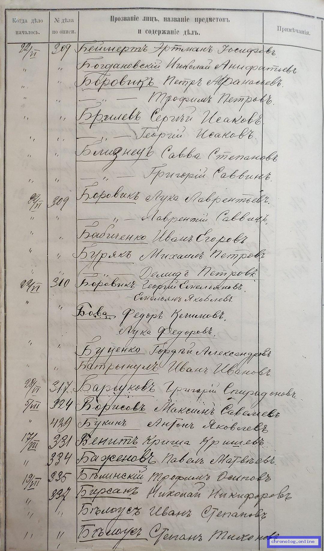 РГИАДВ 704-4-3230, Л.7 (Указатель дел переселенческой части за 1912 год): Бережный Леонтий Климович показан со ссылкой на дело (старая опись, нумерация не действительная) №307 от 22.6.1912. Время и место исхода не показано. Снимки: 7. | |||
