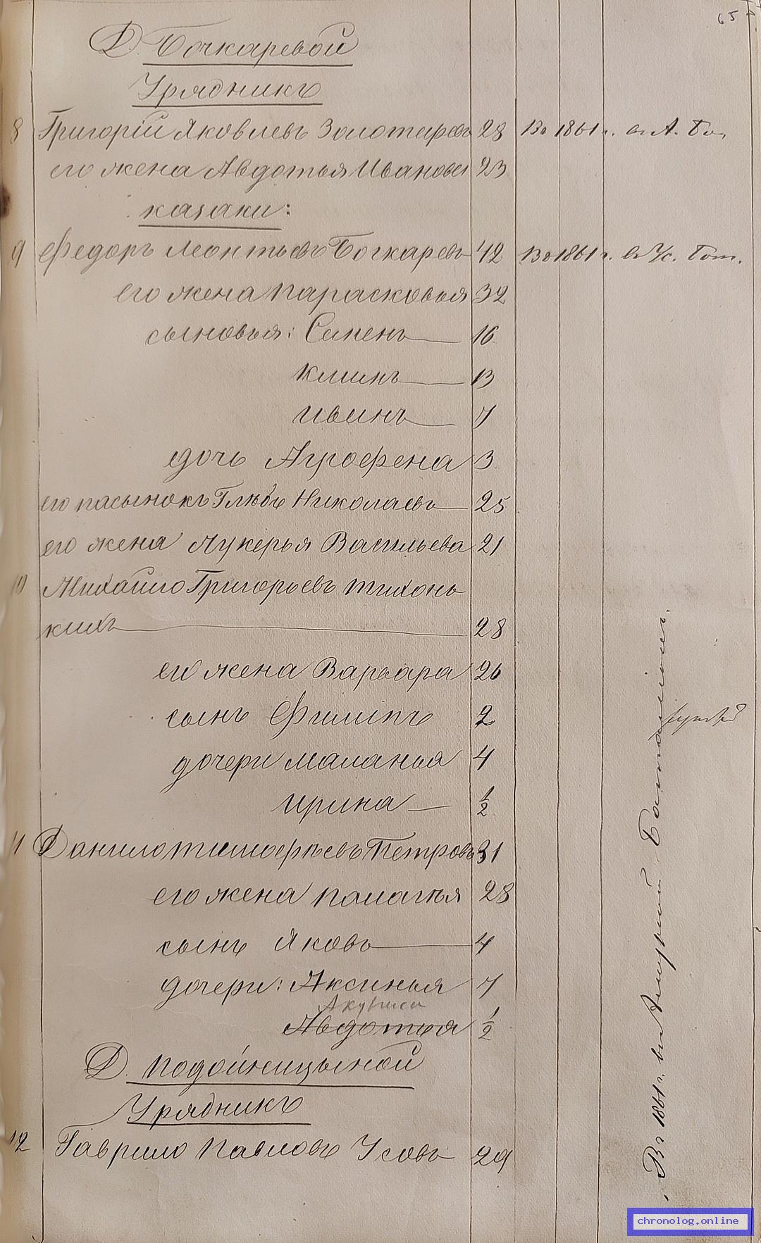 ГАЗК 30-2-190, Л.8, 31 (О выдаче пособий лицам, отправляемым на Амур): Сотник Михайло Якимович Чеснок показан в списке штаб- и обер-офицерам следующим с переселенцами на Амур в 1858 году. Исход: Нерчинский уезд. Снимки: 8, 31. | |||
