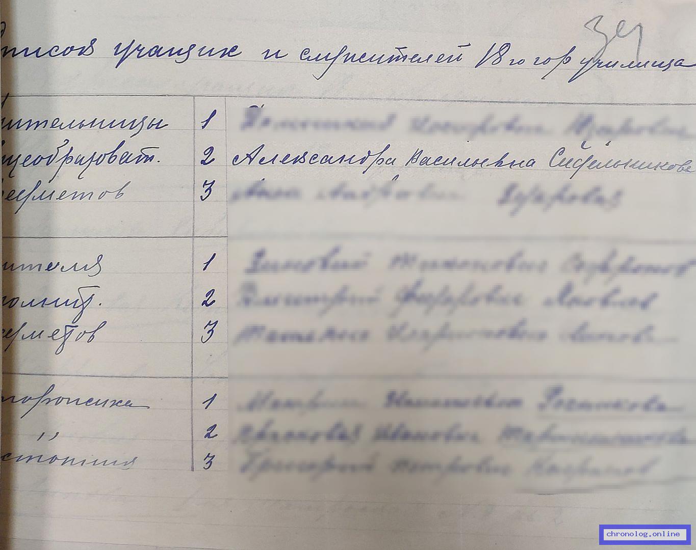 Список преподавателей школ и училищ Владивостока в 1919 году
