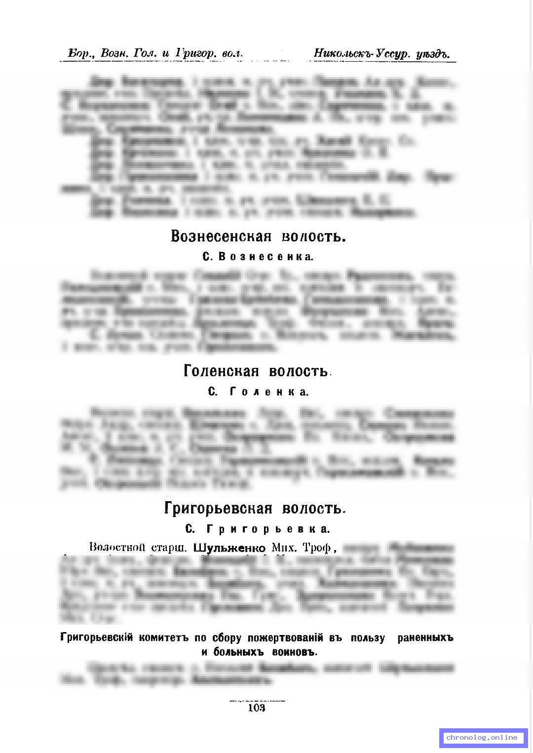Разное СИ-ПО-1916, стр.103 (Памятная книжка Приморской области на 1916 год): Волостной старшина Михаил Трофимович Шульженко. Время и место исхода не показано. Снимки: 103. | |||