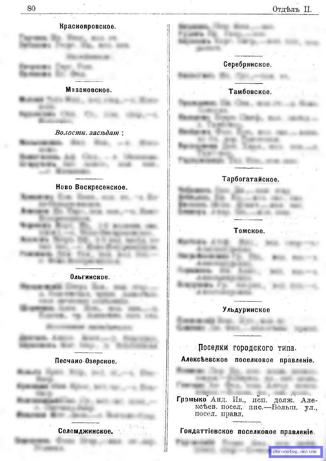 Разное СИ-АО-1915, стр.80 (Памятная книжка и адрес-календарь Амурской области на 1915 год): Исполняющий должность писаря Алексеевского посёлка Громыко Андрей Иванович жительствует на улице Большой при здании поселкового Правления. Время и место исхода не показано. Снимки: 80. | |||