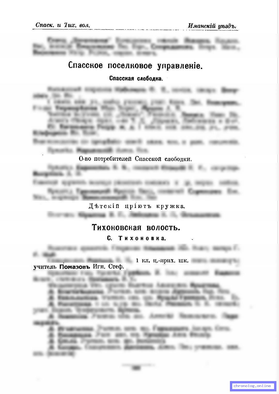 Разное СИ-ПО-1916, стр.120 (Памятная книжка Приморской области на 1916 год): Учитель в одноклассной церковно-приходской школе в селе Тихоновке Игнатий Стефанович Помазов. Время и место исхода не показано. Снимки: 120. | |||