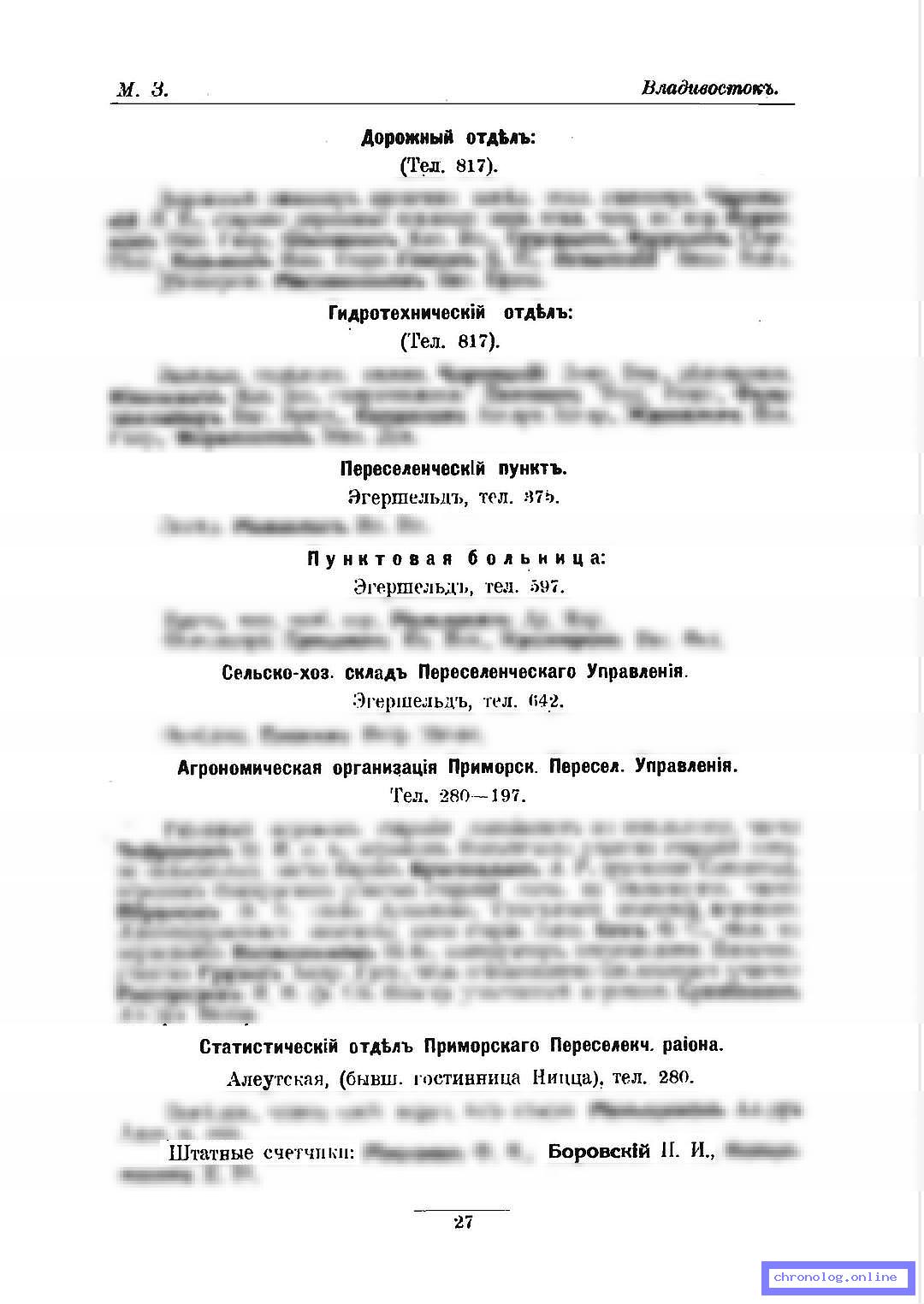 Разное СИ-ПО-1916, стр.27 (Памятная книжка Приморской области на 1916 год): Штатный счётчик Статистического отдела Приморского Переселенческого района И.И. Боровский. Время и место исхода не показано. Снимки: 27. | |||