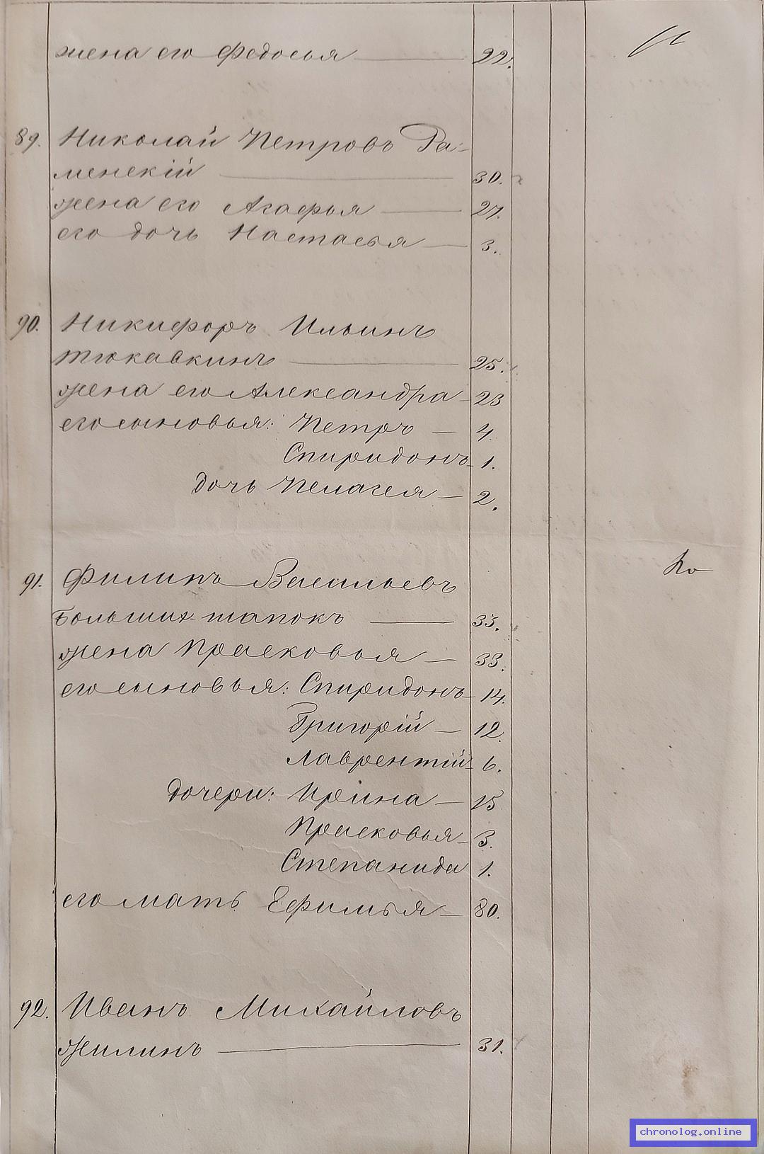 ГАЗК 30-2-270, Л.11, 154об (Посемейные списки переселенцев на р. Амур): Казак 1-го пешего батальона Никифор Ильевич Тюкавин-Тюкавкин 25 жена его Александра 23 сыновья Петр 4 Спиридон 1 дочь Пелагея 2. Исход: деревня Калгинская Нерчинского уезда. Снимки: 11, 154об. | |||