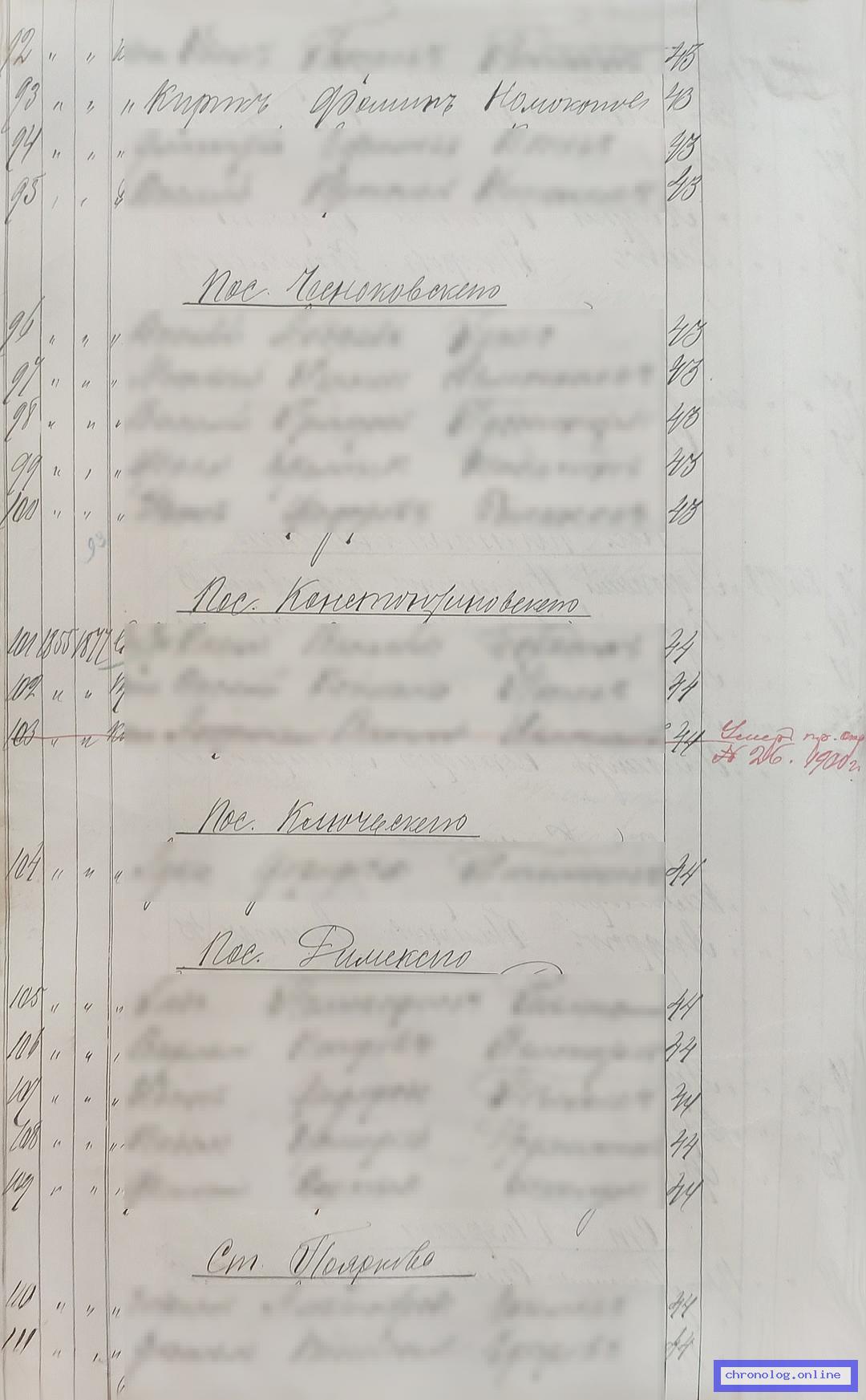 РГИАДВ 793-1-419, Л.168об (Списки казакам, вахмистрам, урядникам Амурского казачьего войска по возрастам, разрядам и округам на 1900 год): Казак Кирик Фомович Номоконов 43 лет из станицы Поярково показан в списке ополчения по Поярковскому станичному округу. Время и место исхода не показано. Снимки: 168об. | |||