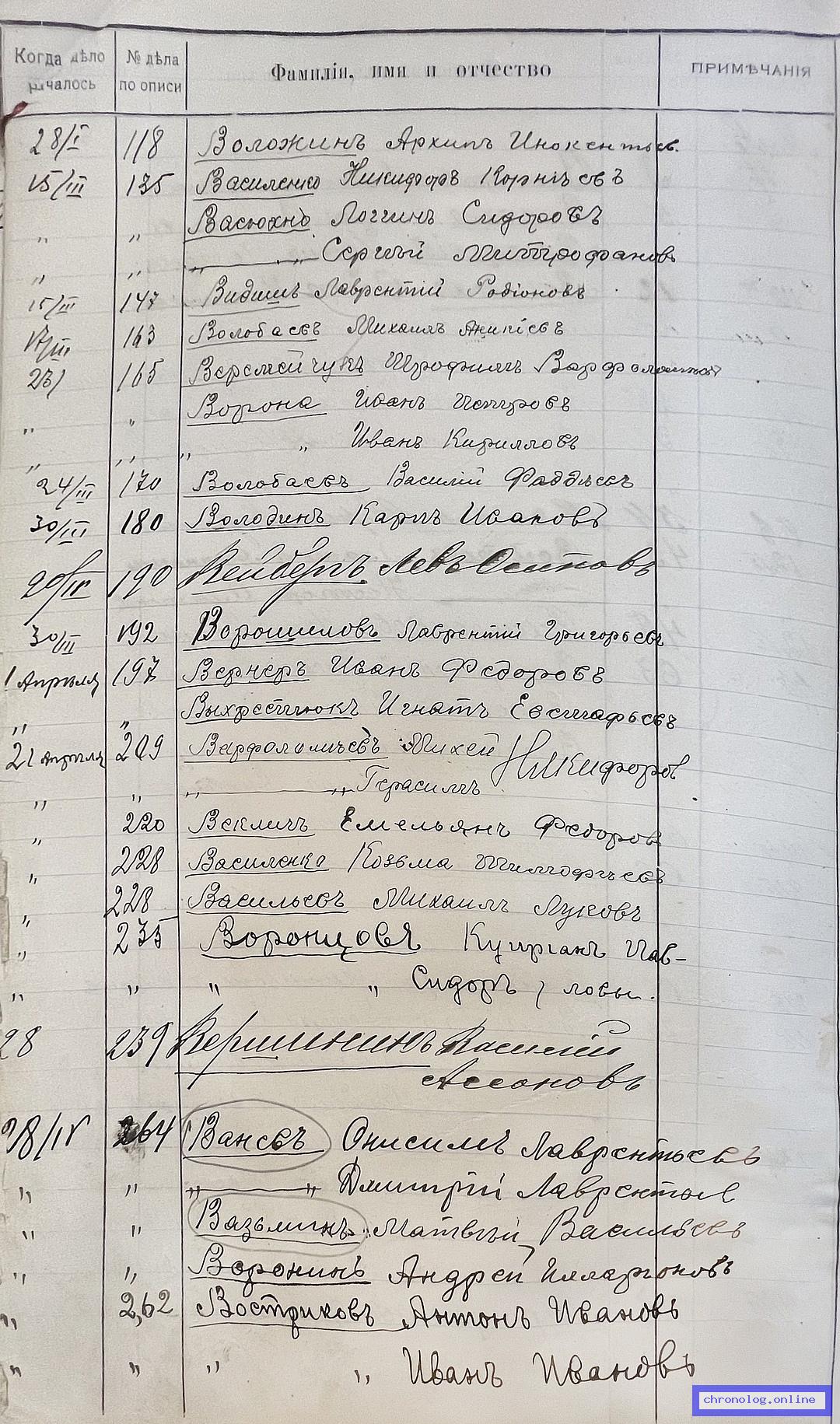Имейте ввиду, что имена и отчества иногда представлены лишь инициалами, например "В" может относиться к именам Василий, Венедикт и т.д., "П" - Павел, Поликарп и т.д., в том числе и женские имена, начинающиеся на ту же букву.