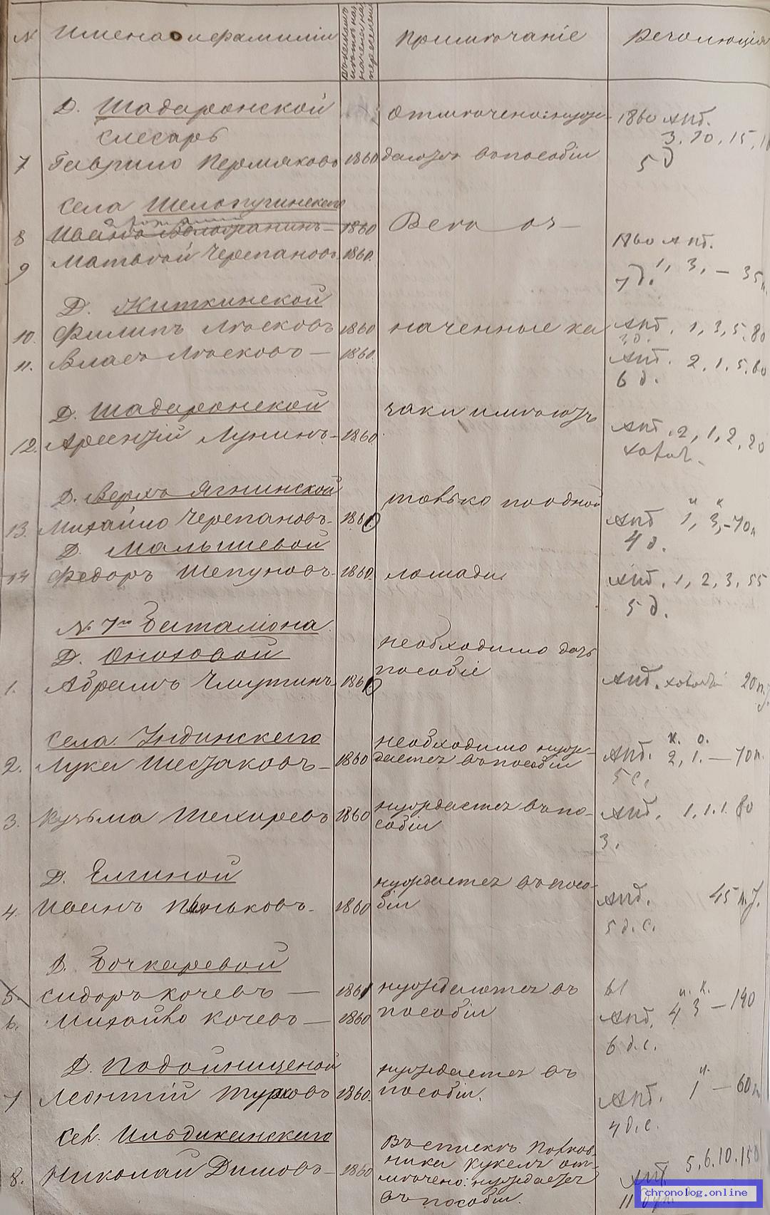 ГАЗК 30-2-297, Л.6об, 7, 10, 14об (О выдаче беднейшим казакам дополнительного пособия): Казак 7-го батальона Абрам Чмутин показан в списке урядникам и казакам, нуждающимся в пособии. Исход: Деревня Онохова Нерчинского уезда. Снимки: 6об, 7, 10, 14об. | ||||