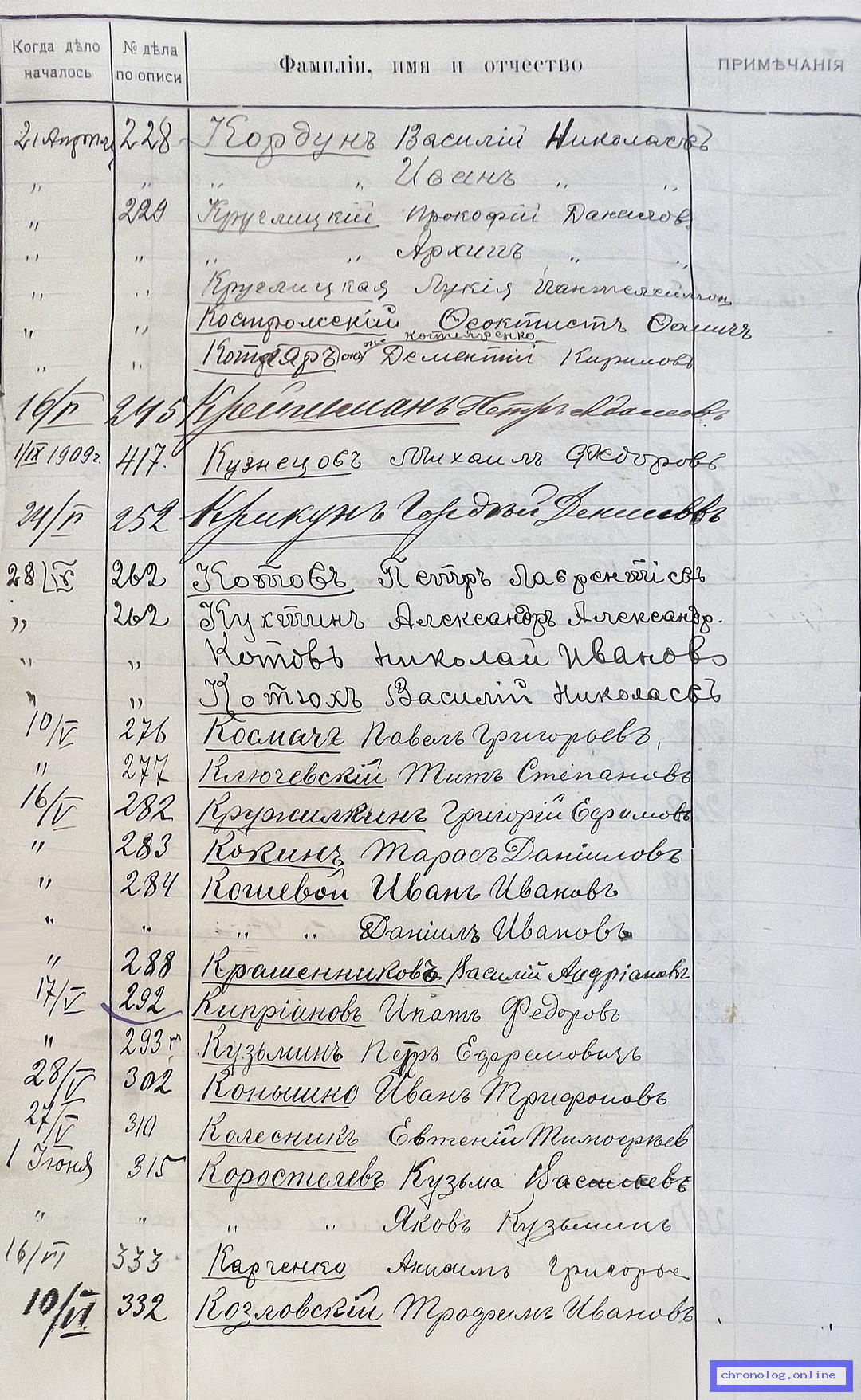 РГИАДВ 704-4-2691, Л.59 (Алфавитный список дел переселенческой части Канцелярии военного губернатора Амурской области за 1911 год): Кушнир Филипп Трофимович показан в деле №159 от 17.3.1911 года (нумерация по старой описи, не действительная). Время и место исхода не показано. Снимки: 59. | ||||