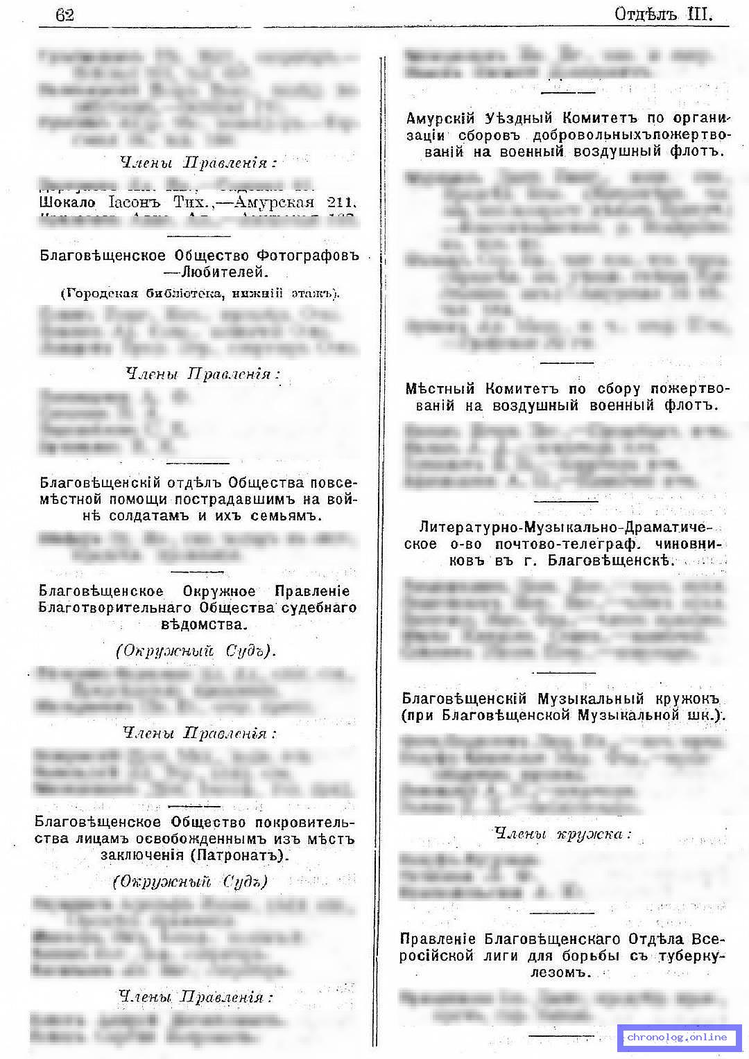 Разное СИ-АО-1915, стр.? (Памятная книжка и адрес-календарь Амурской области на 1915 год): Член Правления Общества Туристов Иасон Тихонович Шокало, жительствует по адресу Амурская 211. Время и место исхода не показано. Снимки: 61, 62. | ||||