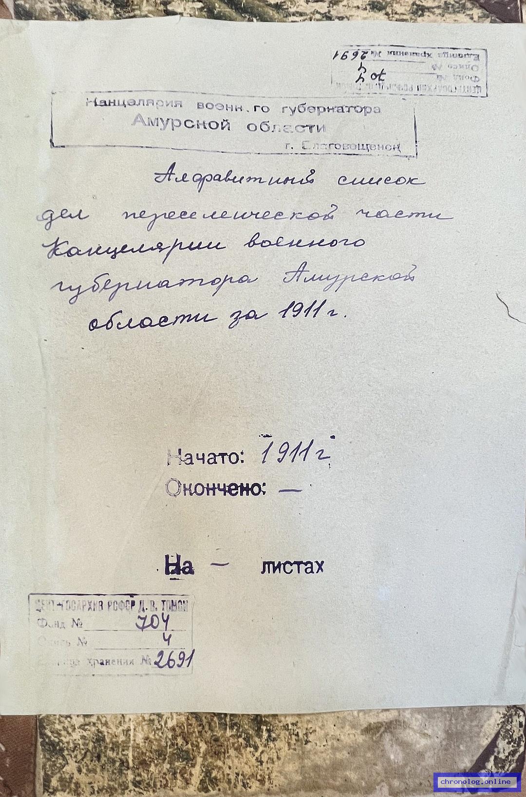 Документ 'Алфавитный список дел переселенческой части Канцелярии Военного губернатора Амурской области за 1911' (Амурская область, 1911), число страниц: 190) представлен на платформе. Ссылка в Телеграме