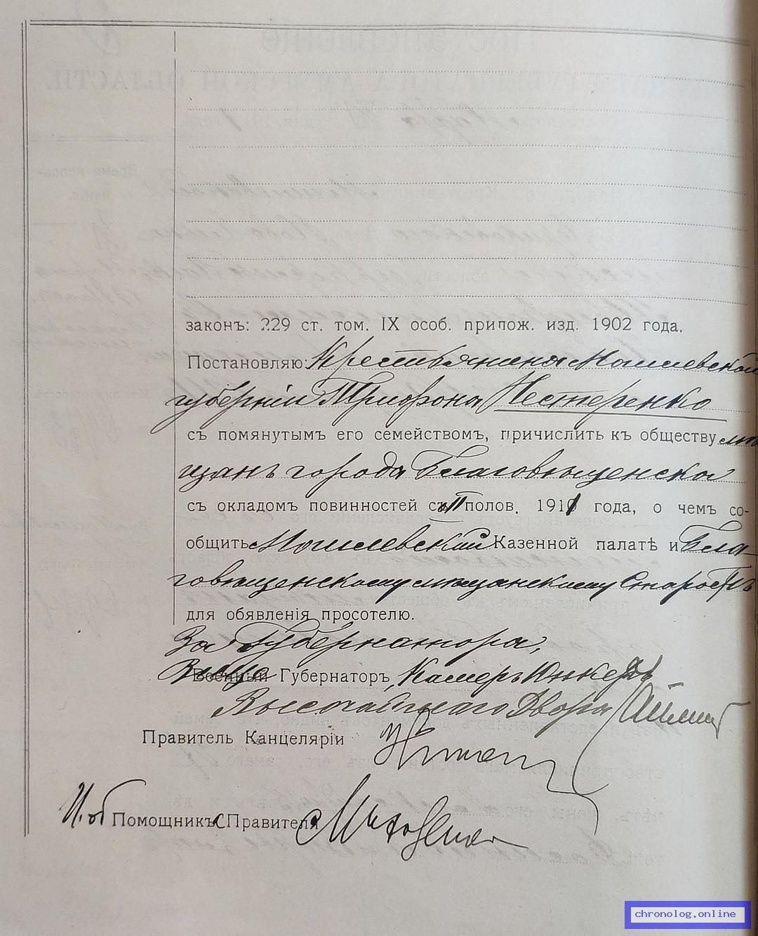 Документ 'Дело о причислении к сословию мещан г. Благовещенска переселенца Нестеренко Т.А' (Амурская область, 7.03.1911 - 31.03.1911), число страниц: 5) представлен на платформе. Ссылка в Телеграме
