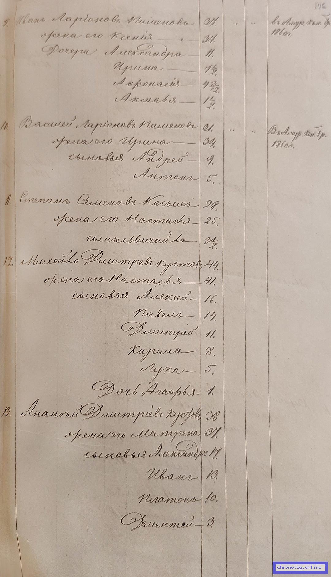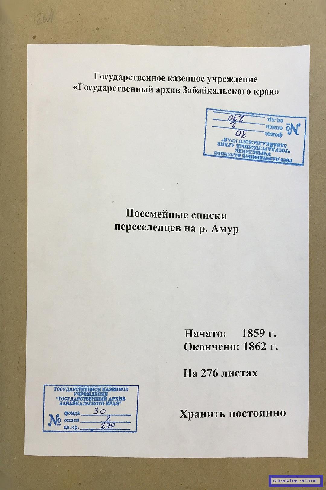 Документ 'Посемейные списки переселенцев на р. Амур' (Без указания (Амурская область), 1859-1862), число страниц: 276) представлен на платформе. Ссылка в Телеграме