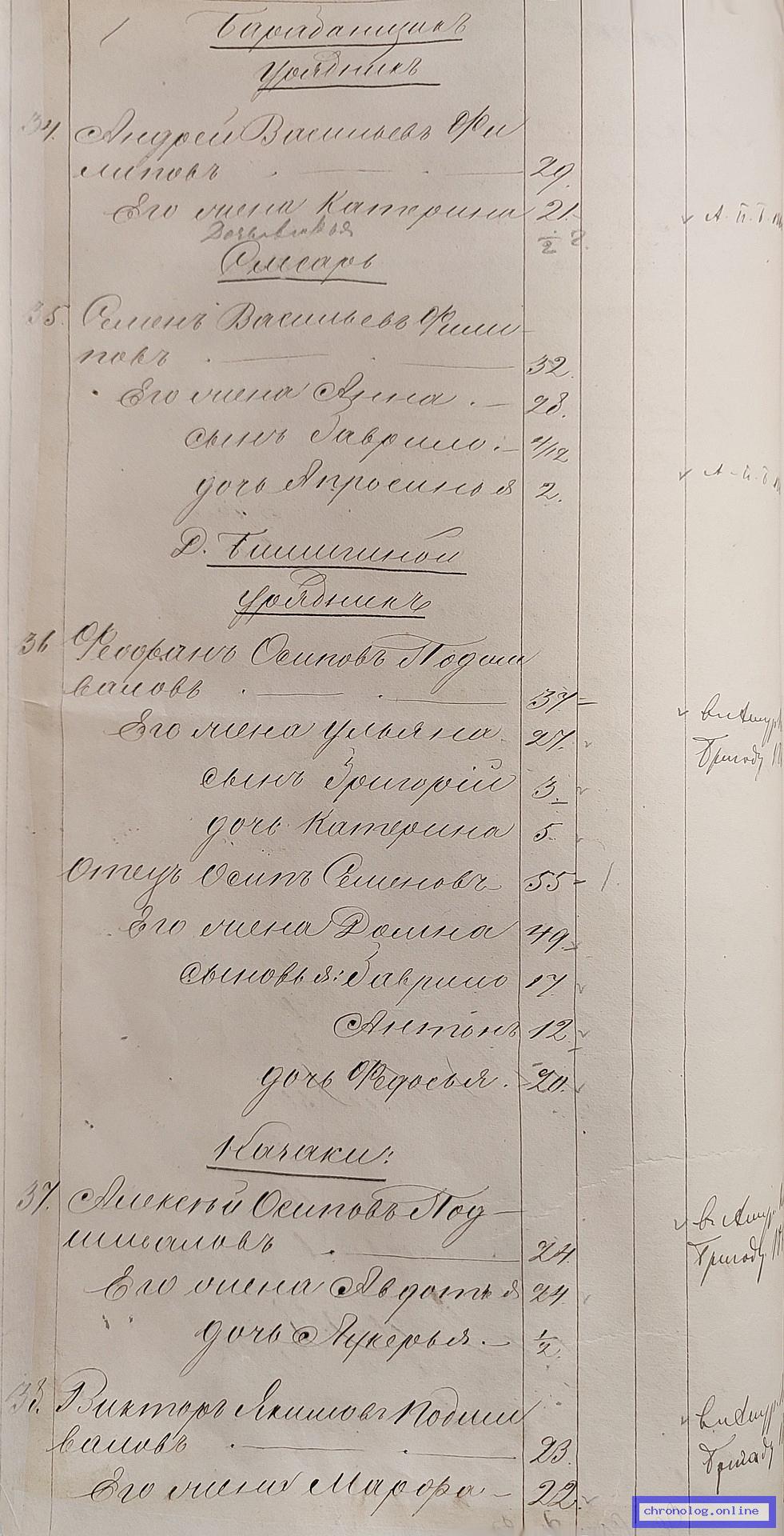 ГАЗК 30-2-270, Л.88об, 140об, 218об (Посемейные списки переселенцев на р. Амур): Барабанщик урядник 9-го пешего батальона Андрей Васильевич Филипов 30 его жена Катерина 22 дочь Агафья полгода. Исход: деревня Андроникова Нерчинского уезда. Снимки: 88об, 140об, 218об. | |||