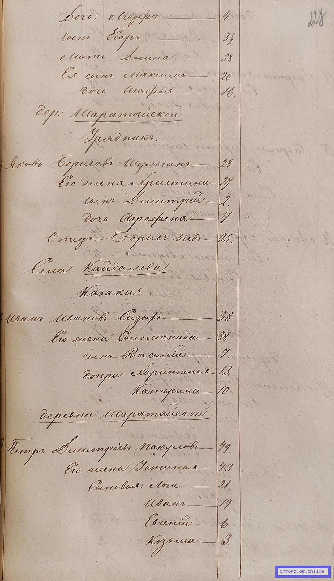 ГАЗК 30-2-270, Л.86об, 131, 217 (Посемейные списки переселенцев на р. Амур): Казак 9-го пешего батальона Иван Фёдорович Колотовкин 26 его жена Агафья 20 дочь Авдотья 1 отец Фёдор Алексеевич 60 его жена Анна 50 сын Евсей 5. Исход: деревня Саватеева Нерчинского уезда. Снимки: 86об, 131, 217. | |||