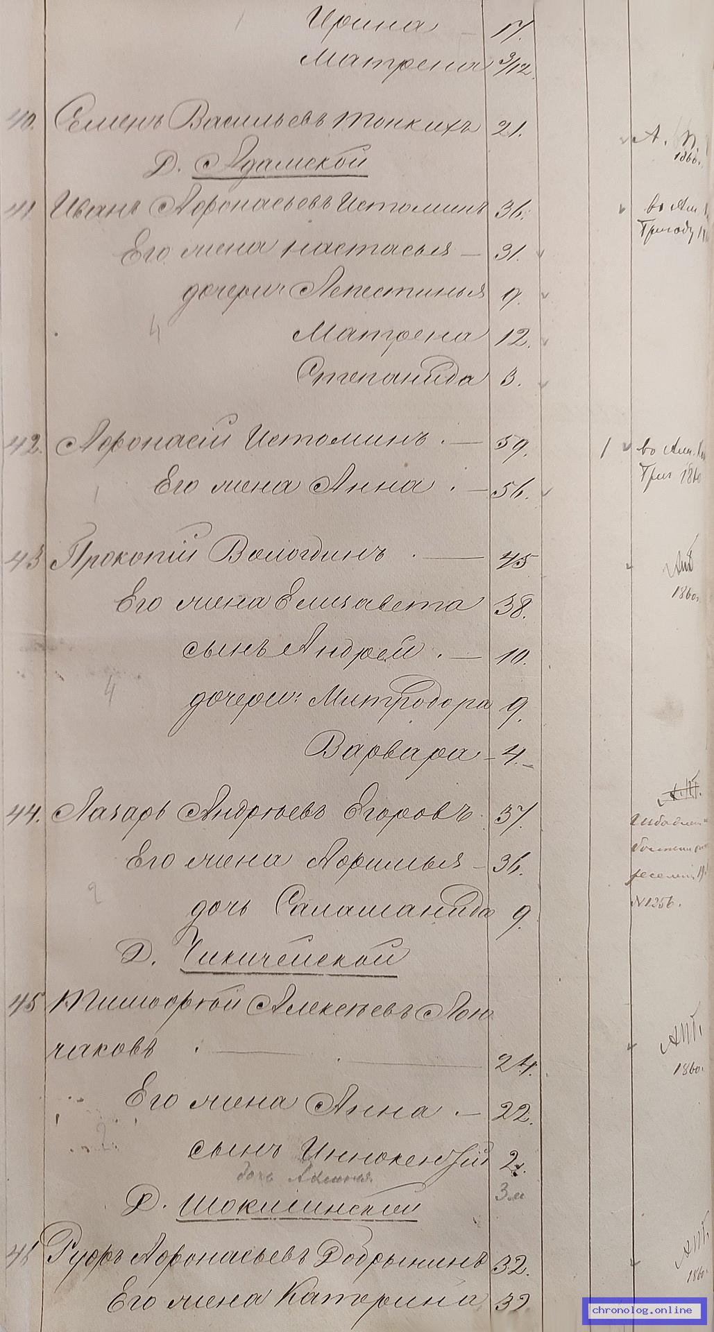 ГАЗК 30-2-270, Л.122об, 134, 250об (Посемейные списки переселенцев на р. Амур): Казак 12-го пешего батальона Иван Афонасьевич Истомин 37 его жена Настасья 32 дочери Липистимья 10 Матрена 13 Степанида 4. Исход: деревня Адамская Нерчинского уезда. Снимки: 122об, 134, 250об. | |||