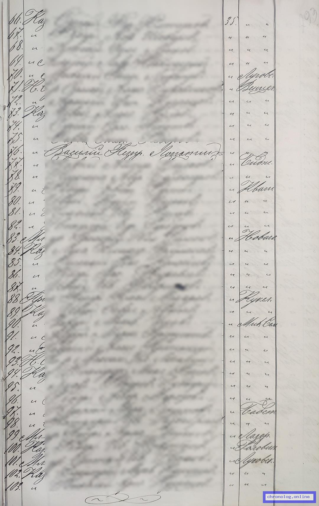 РГИАДВ 793-1-419, Л.293 (Списки казакам, вахмистрам, урядникам Амурского казачьего войска по возрастам, разрядам и округам на 1900 год): Казак запасного разряда Василий Петрович Лопатин 35 лет из посёлка Венцелевского показан в списке по Михайлосемёновскому станичному округу. Время и место исхода не показано. Снимки: 293. | |||
