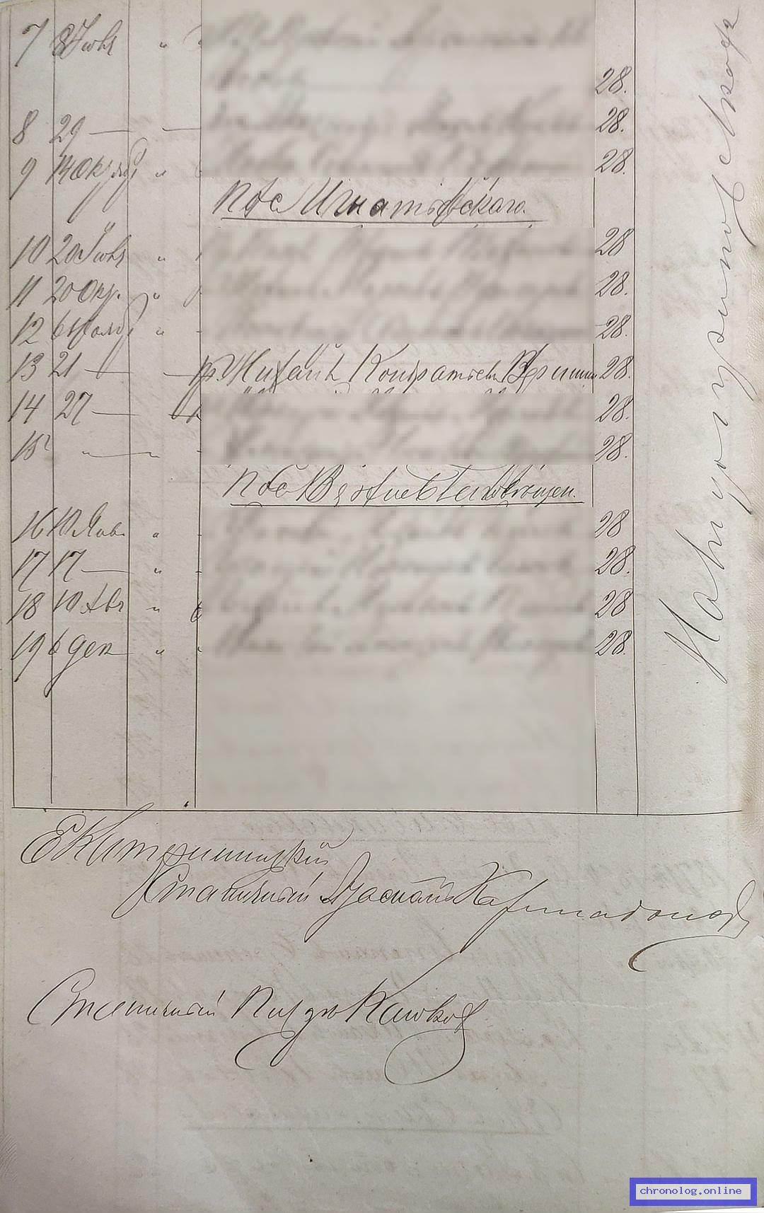 РГИАДВ 793-1-419, Л.123об (Списки казакам, вахмистрам, урядникам Амурского казачьего войска по возрастам, разрядам и округам на 1900 год): Приказчик Михаил Кондратьевич Вершинин 28 лет из посёлка Игнатьевского показан в списке по Екатерининскому станичному округу. Время и место исхода не показано. Снимки: 123об. | |||