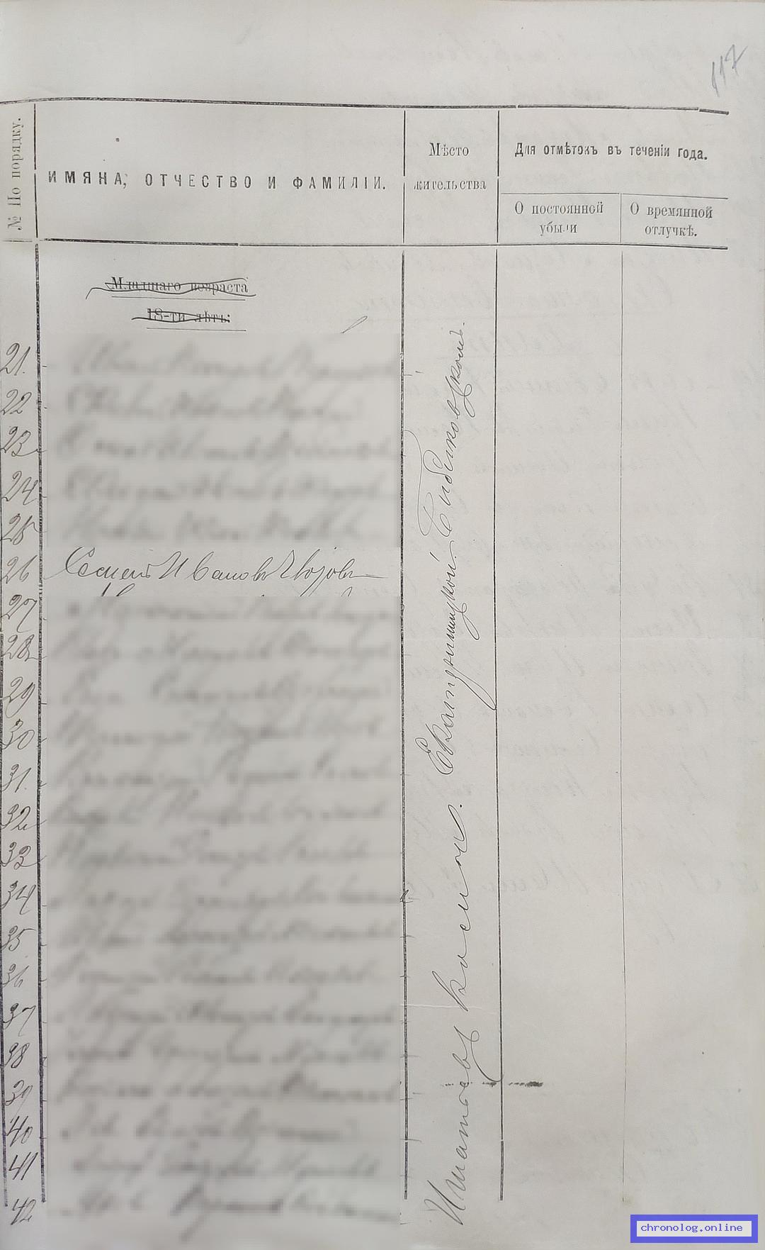 РГИАДВ 793-1-419, Л.282об (Списки казакам, вахмистрам, урядникам Амурского казачьего войска по возрастам, разрядам и округам на 1900 год): Казак Назар Мокеевич Волохов 46 лет показан в списке по Михайлосемёновскому станичному округу. Время и место исхода не показано. Снимки: 282об. | |||