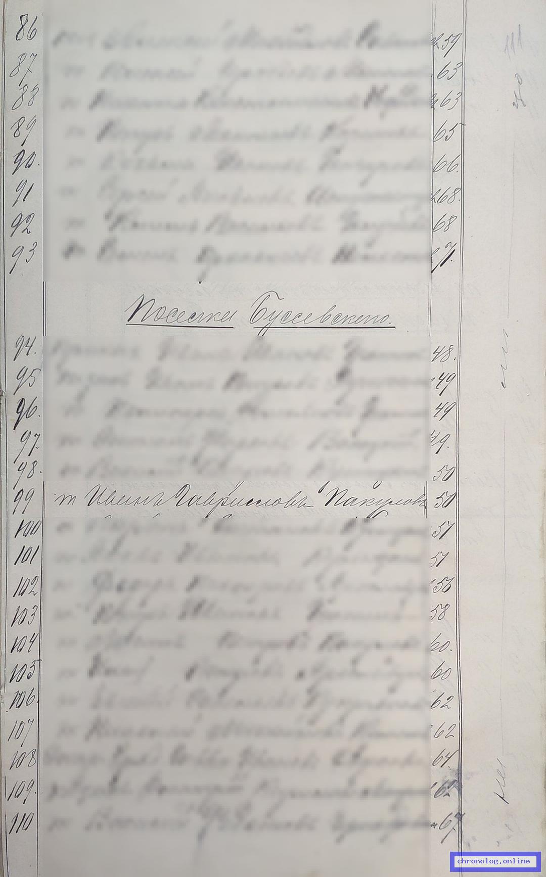 РГИАДВ 793-1-419, Л.117об (Списки казакам, вахмистрам, урядникам Амурского казачьего войска по возрастам, разрядам и округам на 1900 год): Казак приготовительного разряда Павел Гаврилович Номоконов 20 лет из посёлка Бибиковского показан в списке по Екатерининскому станичному округу. Время и место исхода не показано. Снимки: 117об. | |||