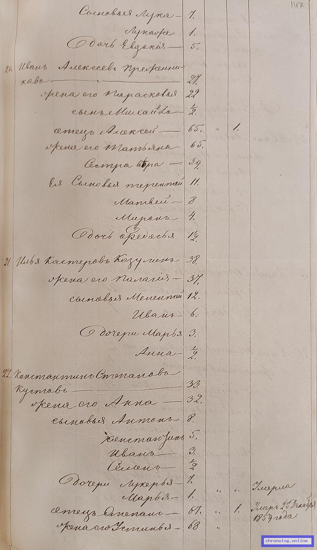 ГАЗК 30-2-270, Л.3, 146об, 147 (Посемейные списки переселенцев на р. Амур): Казак 1-го пешего батальона Василий Фёдорович Колесников 28 жена его Ксения 27 сыновья Лука-Первый 7 Лука-Второй 1 дочь Евдокия 5. Исход: село Быркинское Нерчинского уезда. Снимки: 3, 146об, 147. | |||