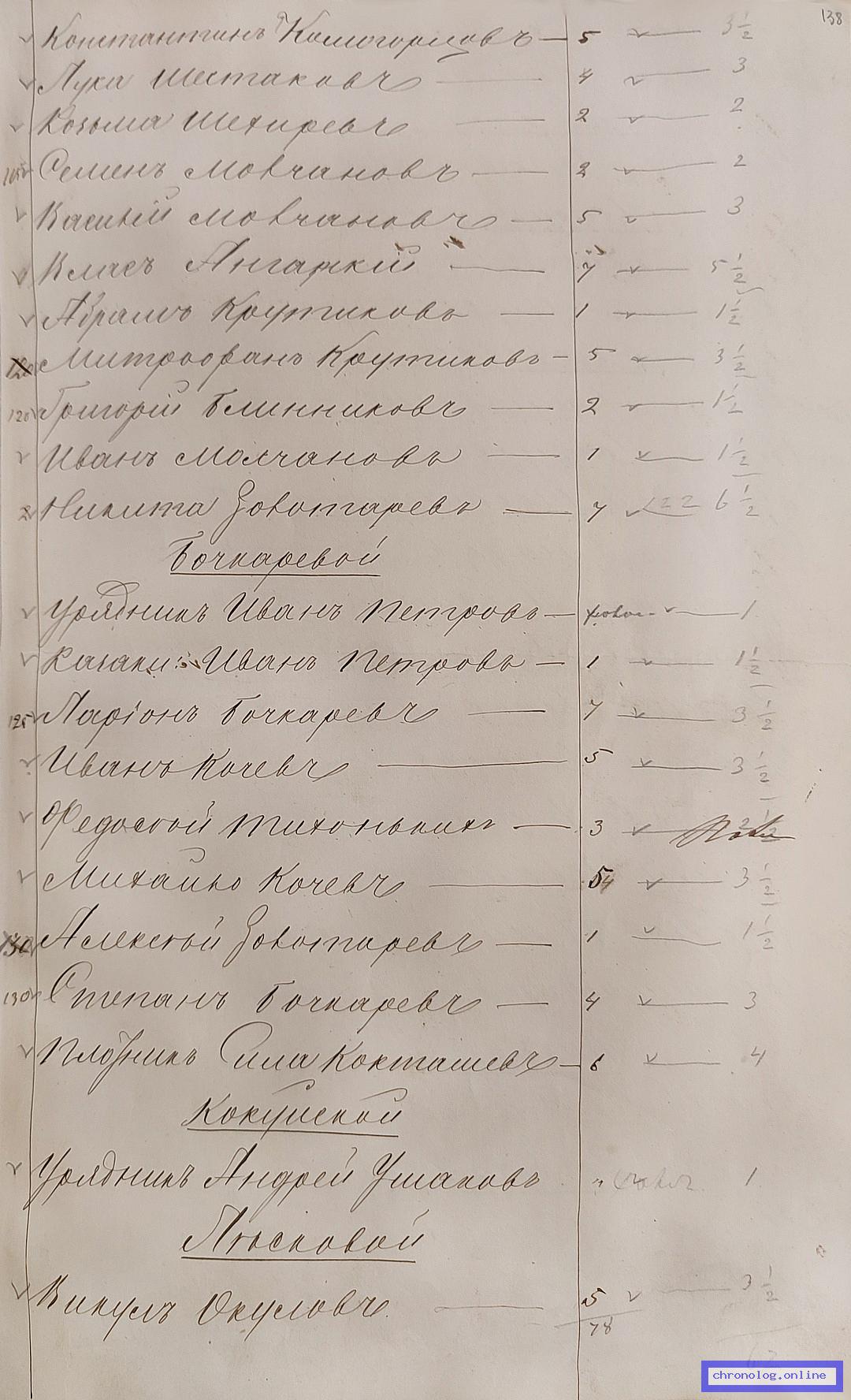 ГАЗК 30-2-270, Л.70, 70об, 138 (Посемейные списки переселенцев на р. Амур): Казак 7-го пешего батальона Викул Павлович Окулов 45 жена его Акулина 47 сыновья Павел 13 Лука 11 Сергей 7 Терентий полгода дочь Варвара 4. Исход: деревня Лескова Нерчинского уезда. Снимки: 70, 70об, 138. | |||