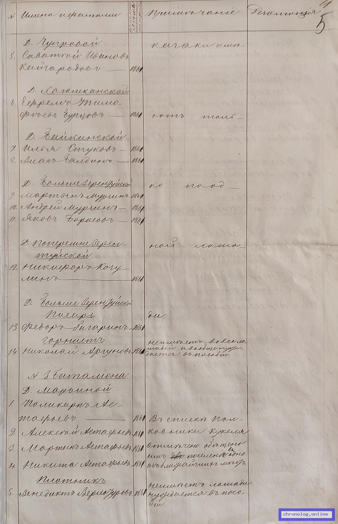 ГАЗК 30-2-297, Л.5 (О выдаче беднейшим казакам дополнительного пособия): Казак 3-го батальона Мартын Астафьев показан в списке урядникам и казакам, нуждающимся в пособии. Исход: Деревня Марьина Нерчинского уезда. Снимки: 5. | |||