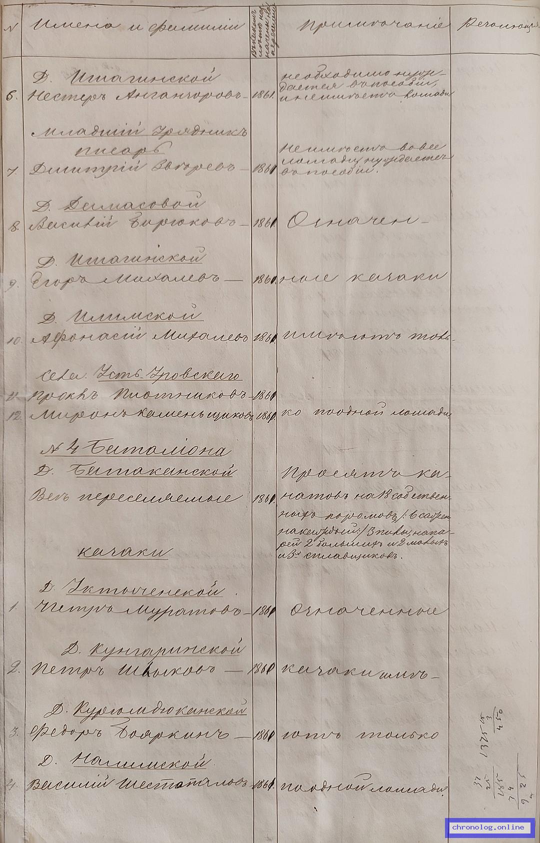 ГАЗК 30-2-190, Л.8 (О выдаче пособий лицам, отправляемым на Амур): Губернский секретарь Никитенко показан в списке на выдачу пособий разным лицам, отправляющимся на Амур с переселенцами в 1858 году. Исход: Нерчинский уезд. Снимки: 8. | |||
