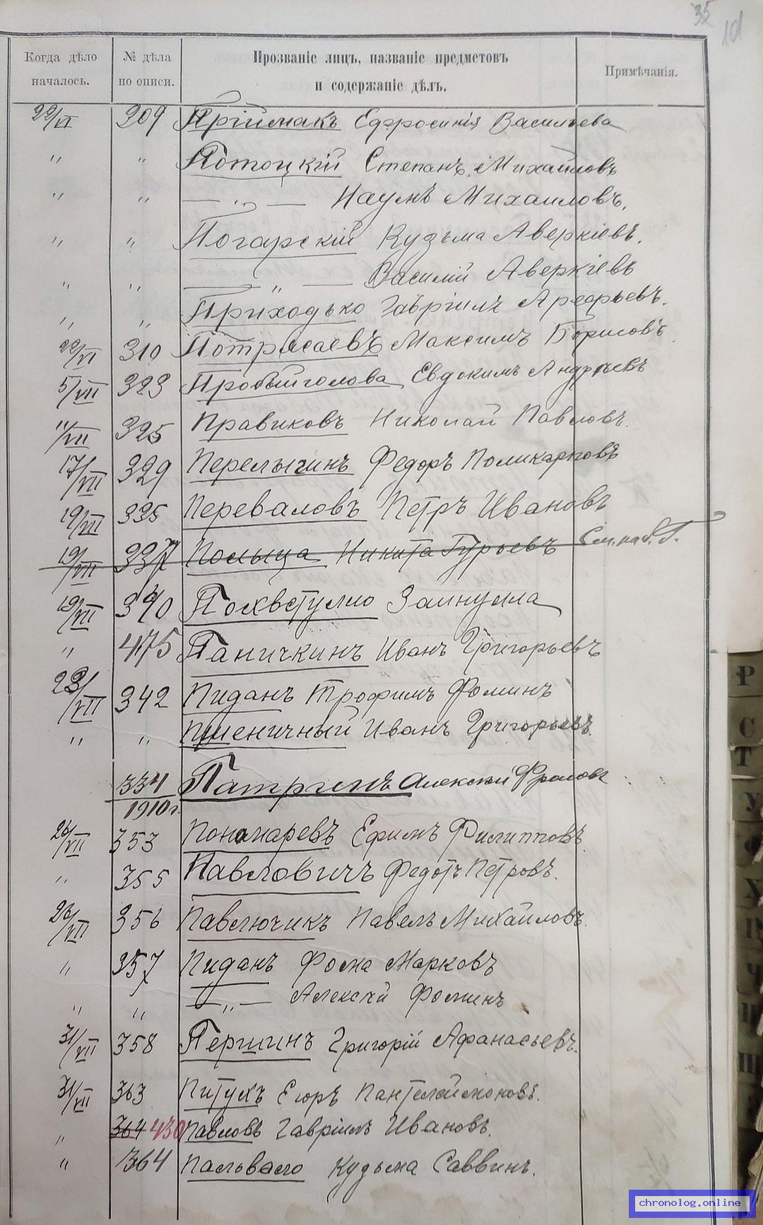 РГИАДВ 704-4-3230, Л.101 (Указатель дел переселенческой части за 1912 год): Пидан Трофим Фомович показан со ссылкой на дело (старая опись, нумерация не действительная) №342 от 23.7.1912. Время и место исхода не показано. Снимки: 101. | |||