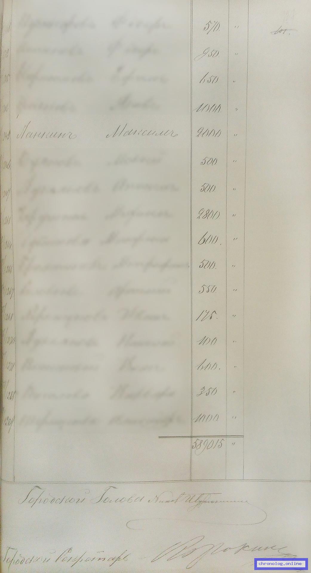 РГИАДВ 704-4-498, Л.123, 127 (Отчёт заведующего переселением о движении переселенцев из Томской губернии за 1888 год): Ланкин Максим показан в списке мещан Благовещенска, владеющих недвижимым имуществом. Время и место исхода не показано. Снимки: 113, 123, 127. | |||