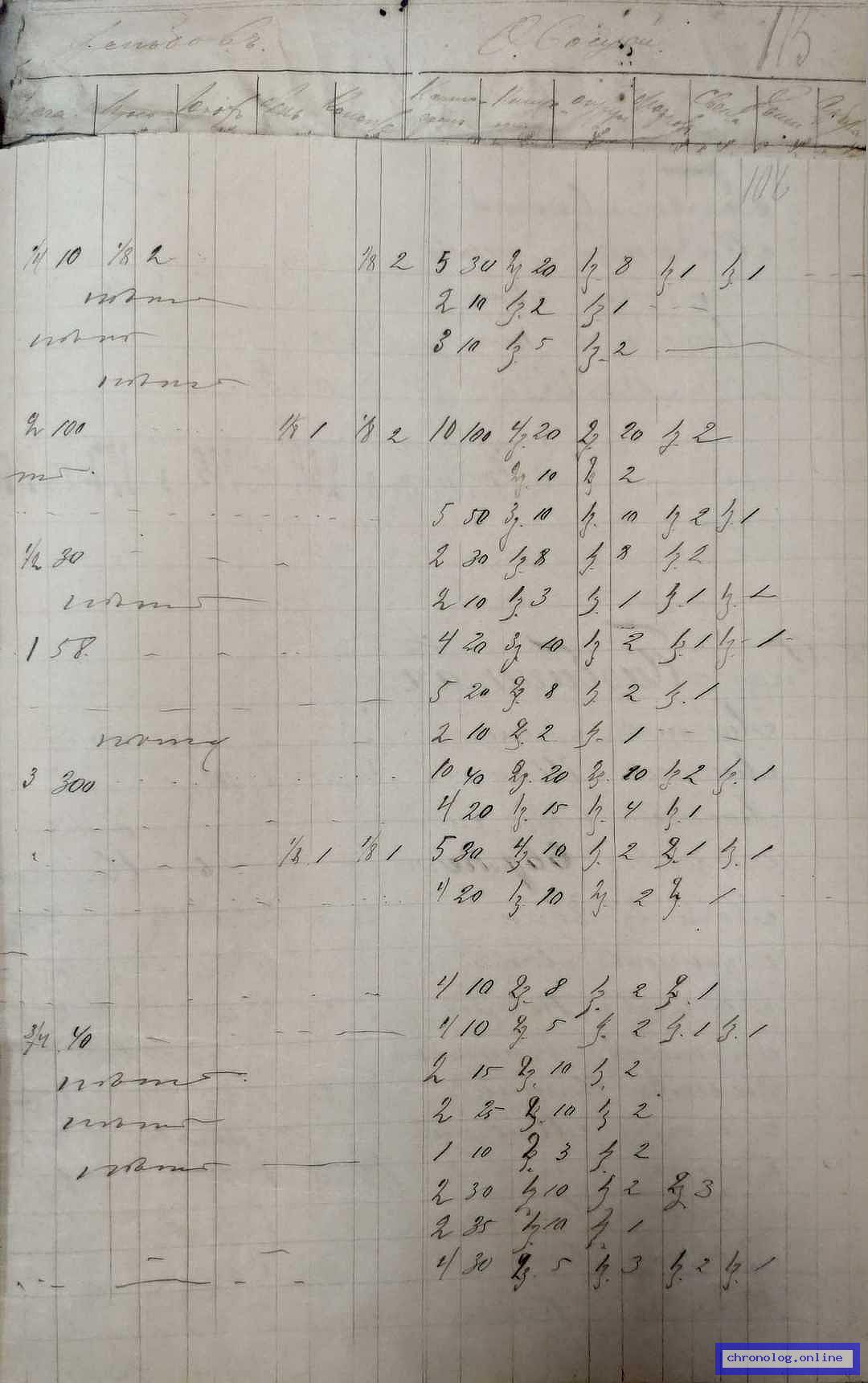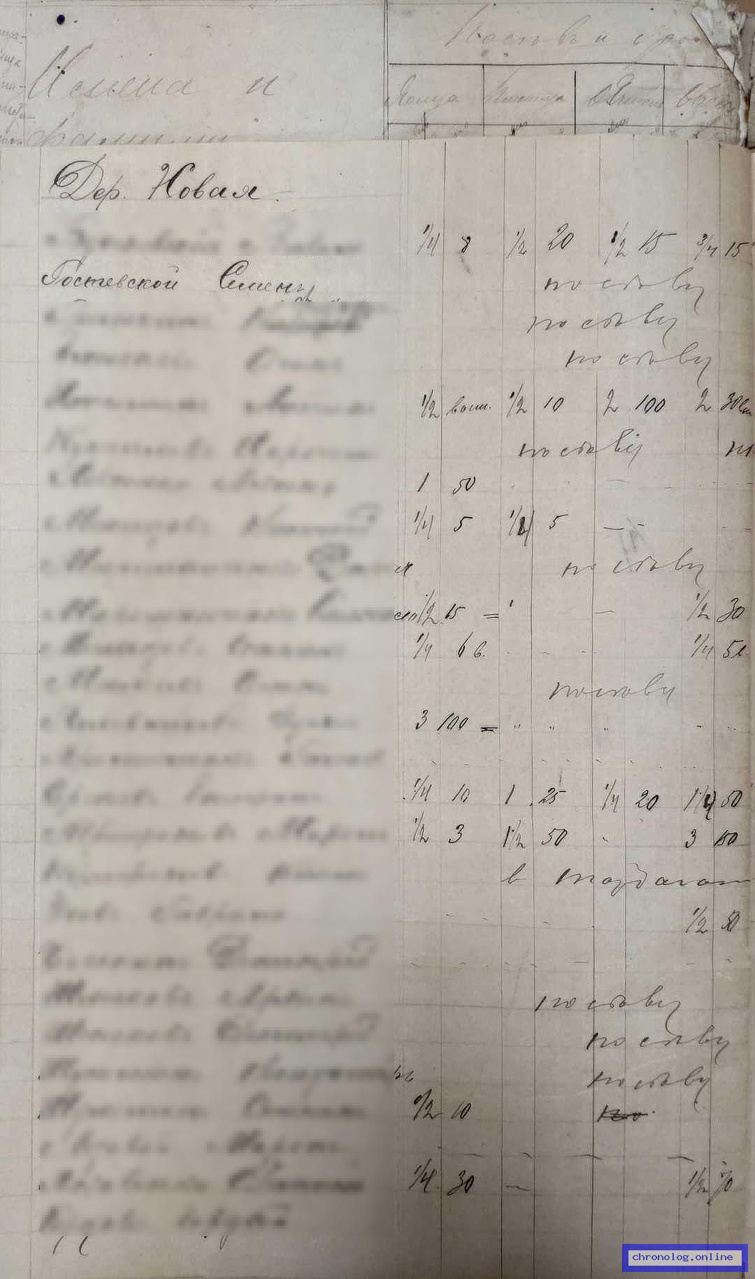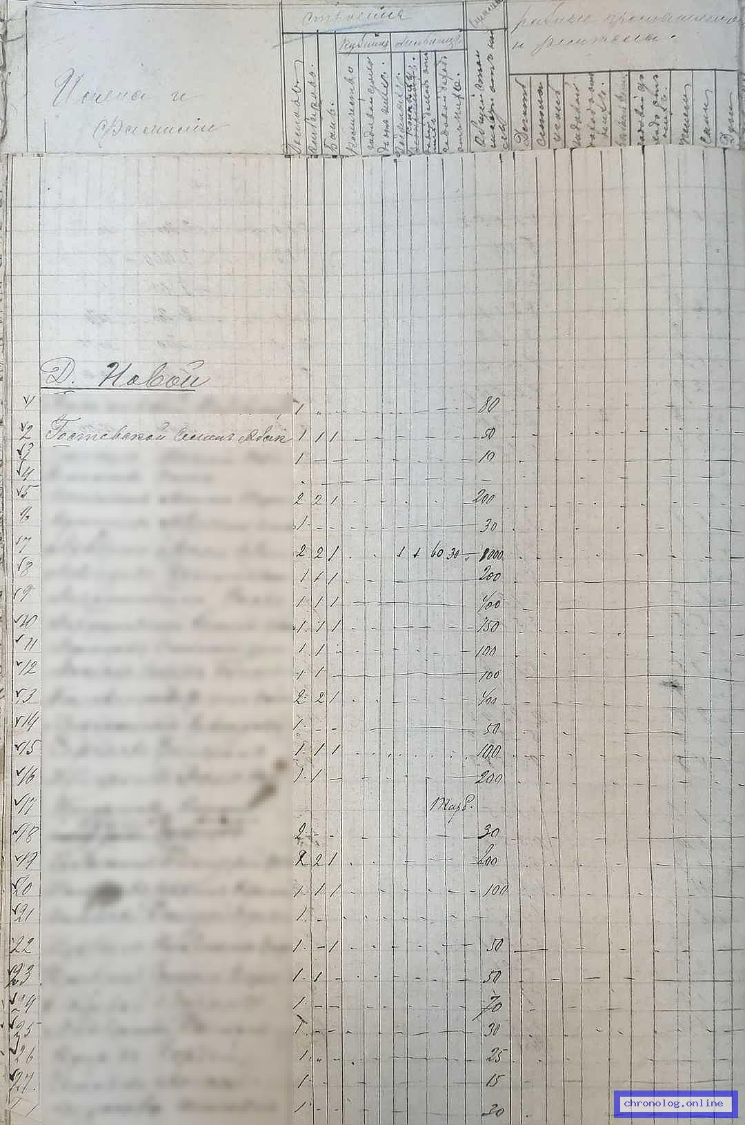 РГИАДВ 746-1-37, Л.45об., 46, 105об., 106 (Сведения о крестьянских селениях и посеве хлеба на 1896 год): Хозяйство Гостевского Семёна Абакумовича: 1 дом, 1 амбар, 1 баня на 50р., 1 лошадь, 2 коровы, 2 овцы на 100р.; посевы: картофеля 2, капусты 1, огурцов 1. Время и место исхода не показано. Снимки: 45об, 46, 105об, 106. | |||