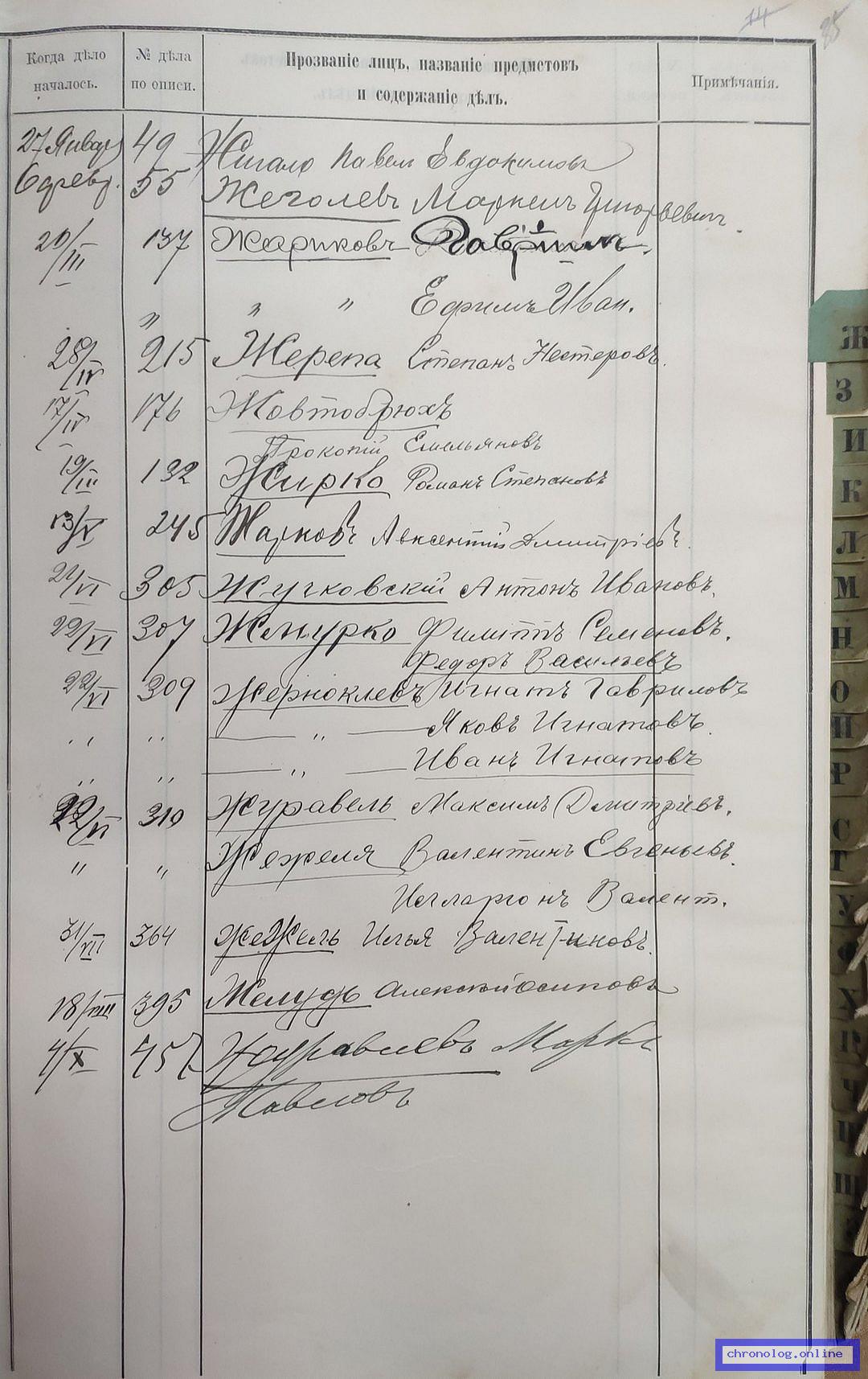 РГИАДВ 704-4-3230, Л.35 (Указатель дел переселенческой части за 1912 год): Жерноклев Игнатий Гавриилович показан со ссылкой на дело (старая опись, нумерация не действительная) №309 от 22.6.1912. Время и место исхода не показано. Снимки: 35. | |||