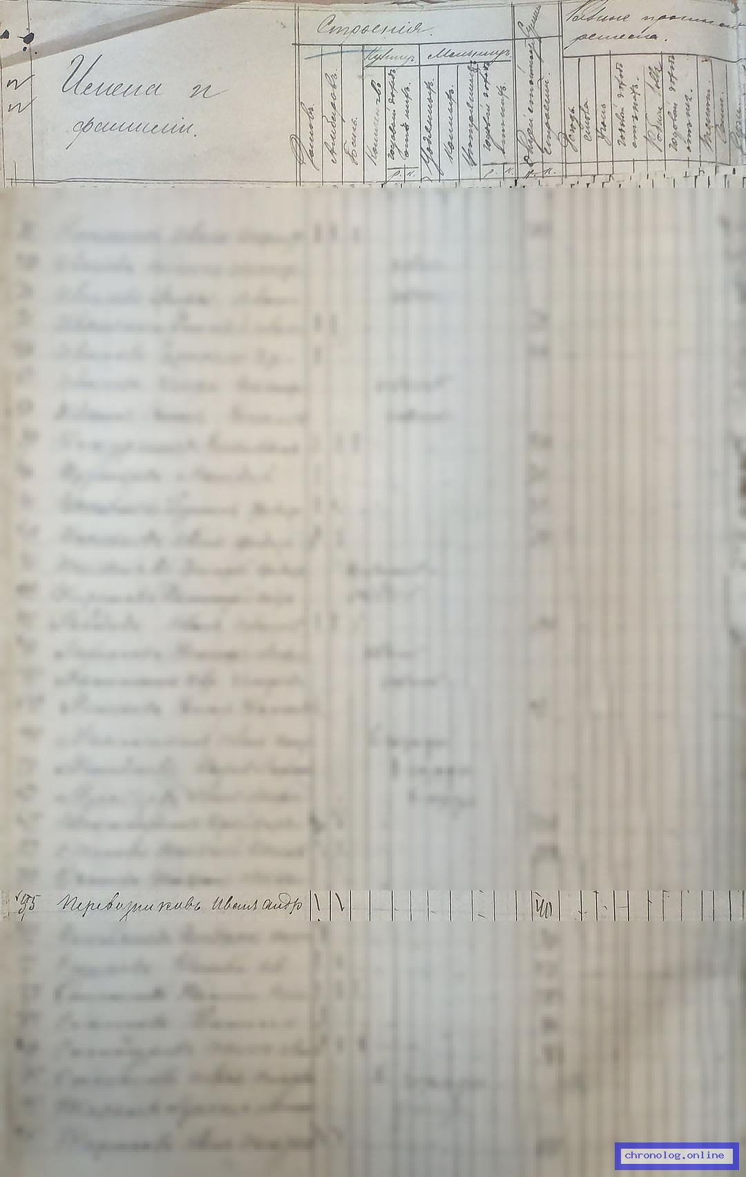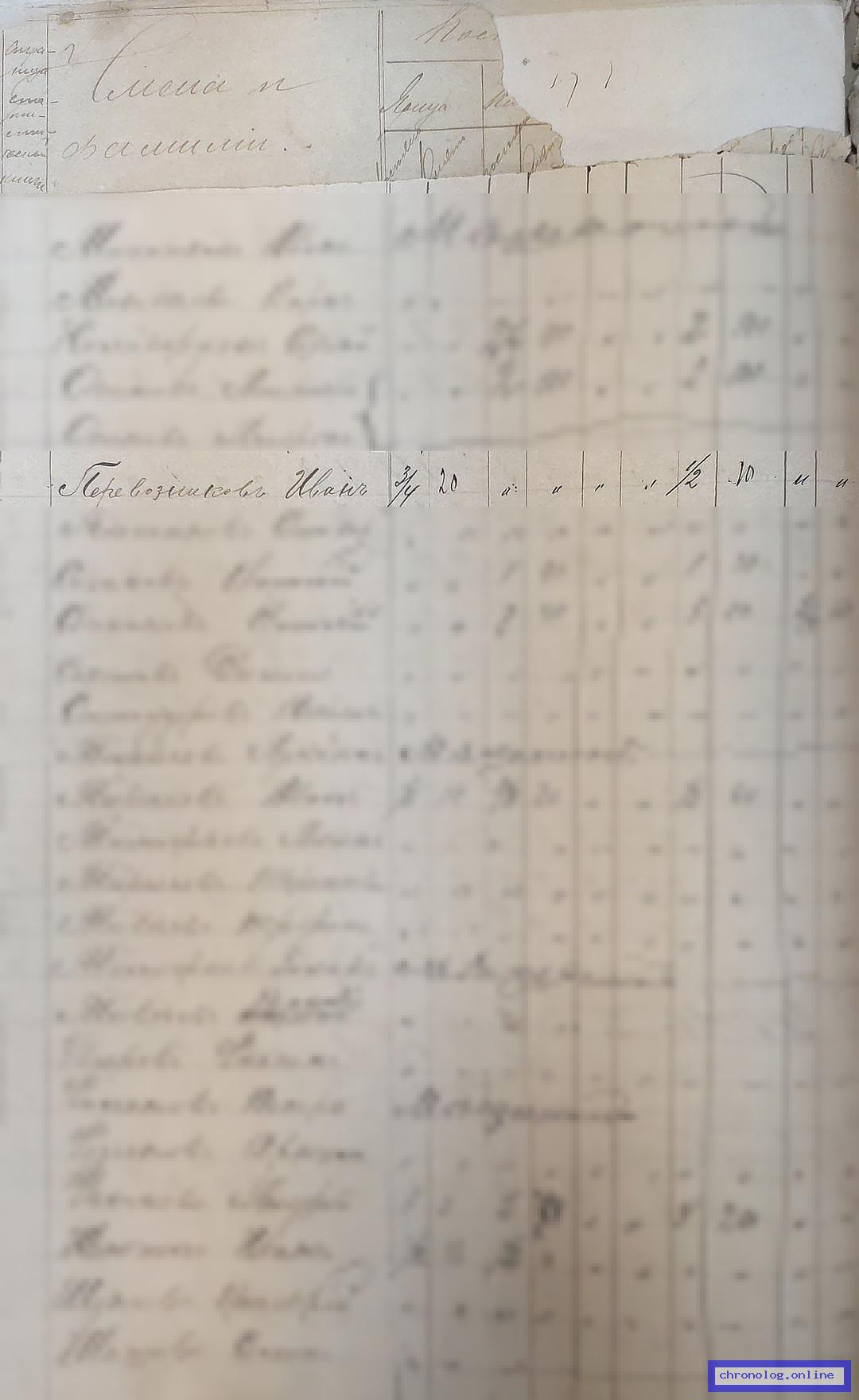 РГИАДВ 746-1-37, Л.13об., 14, 74об., 75 (Сведения о крестьянских селениях и посеве хлеба на 1896 год): Хозяйство Перевозникова Ивана Андреевича: 1 дом, 1 амбар на 40р., 1 лошадь, 1 корова на 100р.; посевы: ярицы ¾, гречи ½, картофеля 5, капусты 1, огурцов 1, моркови ½, свеклы 1. Время и место исхода не показано. Снимки: 13об, 14, 74об, 75. | |||