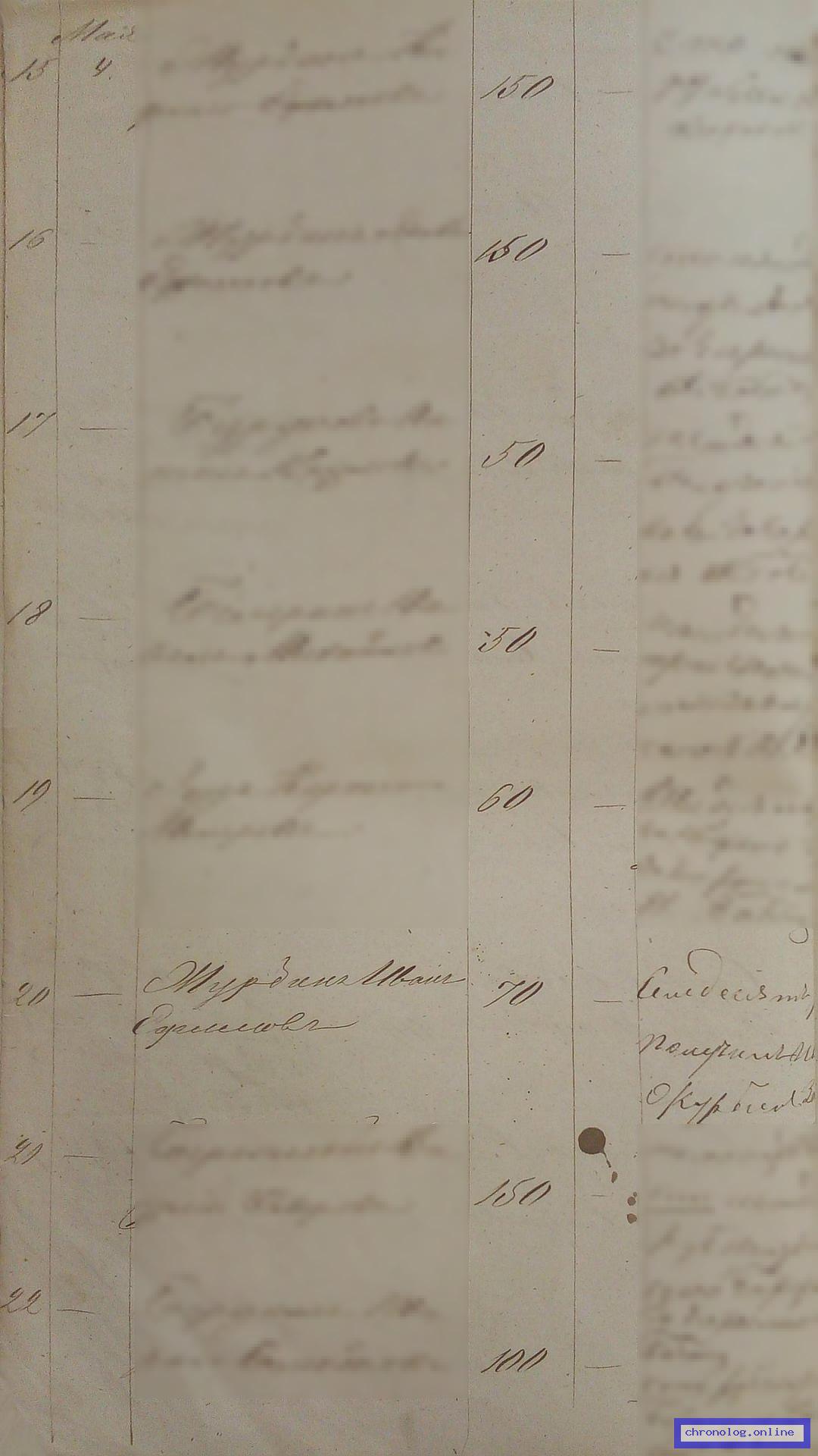 РГИАДВ 704-4-344, Л.15об (Список крестьян Амурской области, подлежащих отбытию повинностей в 1882 году): Крестьянин деревни Сергеевской Чечин Михаил 25 лет. Время и место исхода не показано. Снимки: 15об. | |||