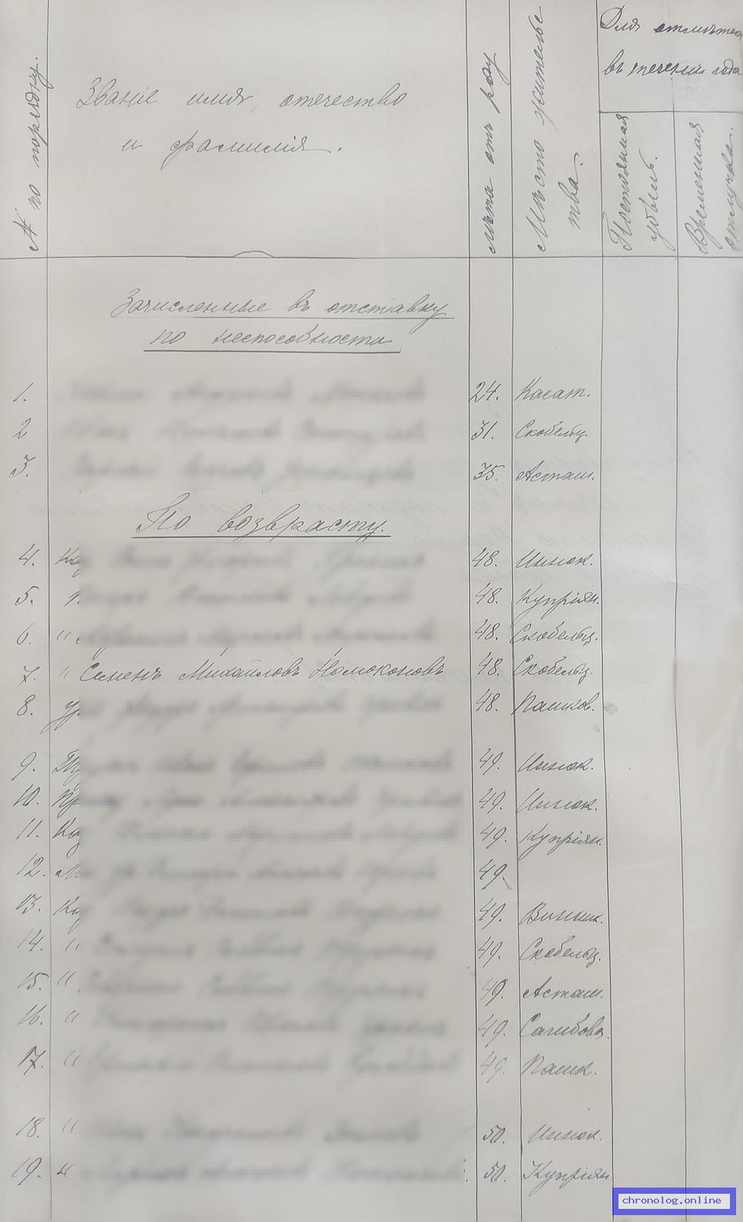 | Вшивков Мирон | село Павловское (Томская волость) | 1896 ( | |