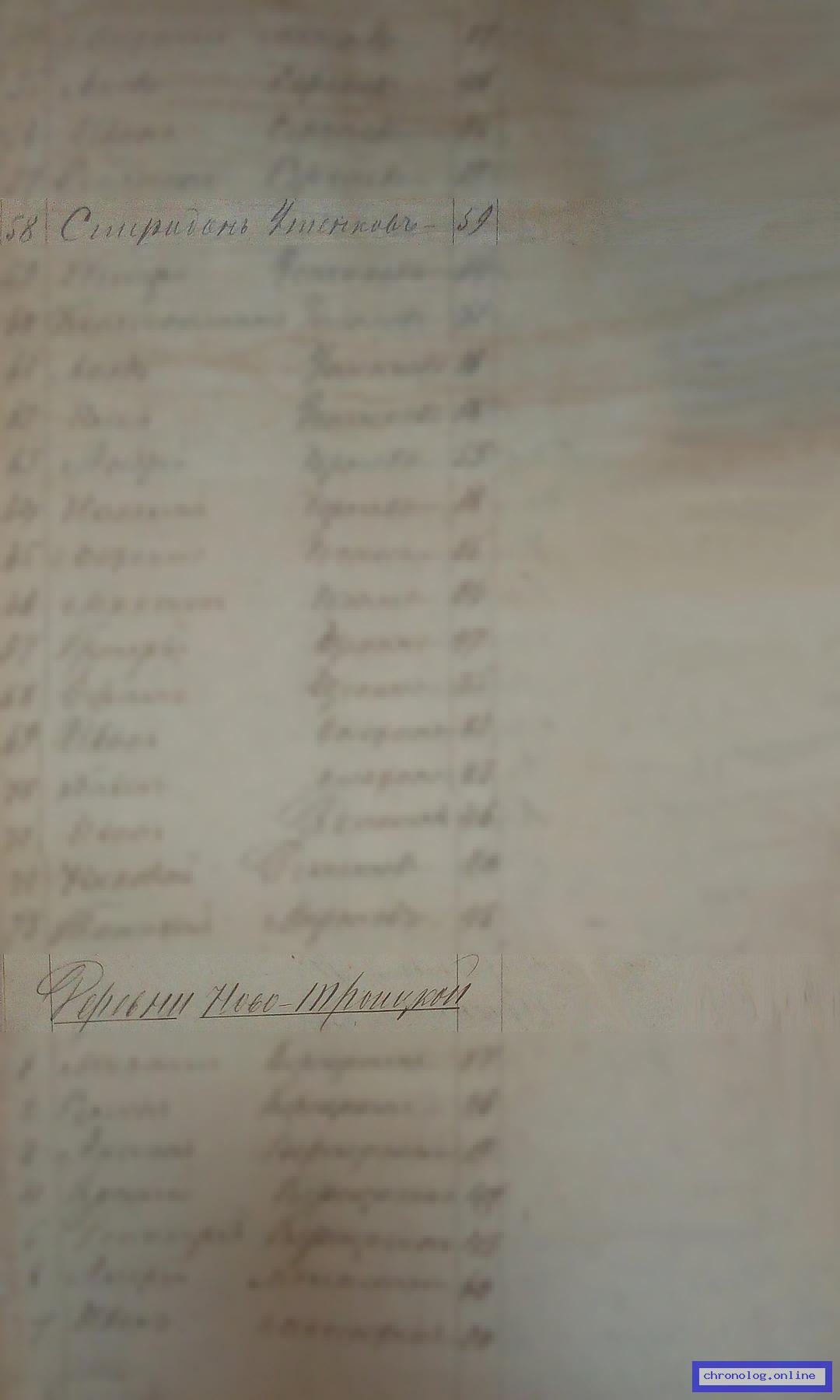 РГИАДВ 704-4-344, Л.15об (Список крестьян Амурской области, подлежащих отбытию повинностей в 1882 году): Крестьянин деревни Сергеевской Утенков Спиридон 59 лет. Время и место исхода не показано. Снимки: 15об. | |||