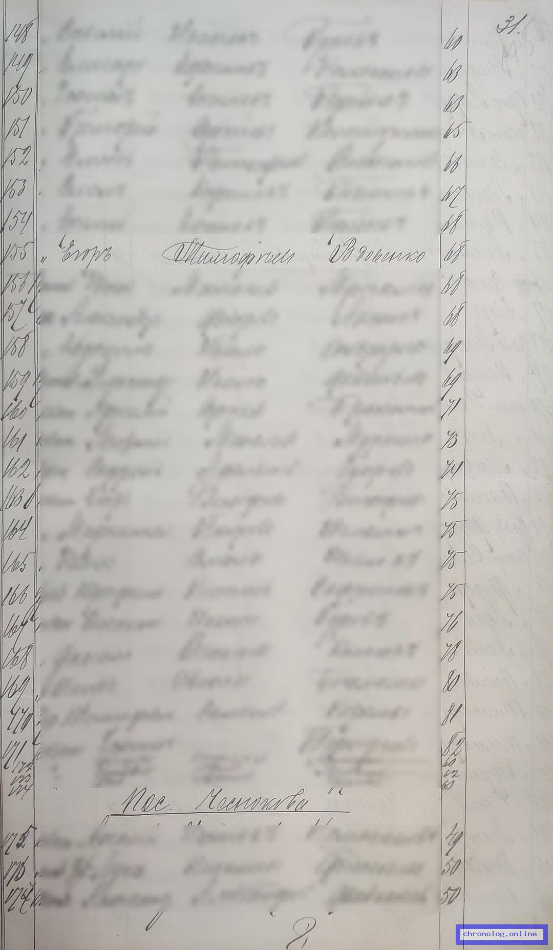 РГИАДВ 793-1-419, Л.175 (Списки казакам, вахмистрам, урядникам Амурского казачьего войска по возрастам, разрядам и округам на 1900 год): Казак Егор Тимофеевич Вдовенко 68 лет показан в списке по станице Поярково Поярковского станичного округа. Время и место исхода не показано. Снимки: 175. | |||